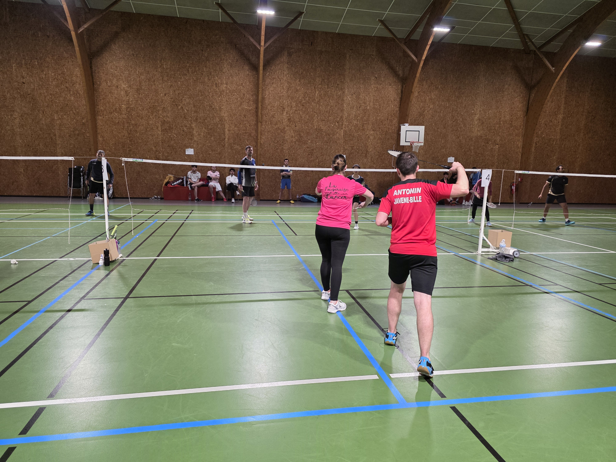 En poule unique de 5, ils gagnent assez facilement leurs deux premiers matchs 21/9 - 21/15 et 21/9 - 21/8. Le 3ème match s’avère plus compliqué. Après un premier set pas vraiment disputé, qu’ils gagnent 21/11, le 2ème sera lui compliqué, ils perdent 21/8. Le 3ème set sera le set de la libération pour les deux paires, ils offriront un set haletant aux spectateurs. Nos protagonistes finiront par gagner 21/18 et par conséquent, remporter le match. Dernier match au goût de finale. Ils sont contre un père et sa fille venues de Parigné. Dans ce dernier match, Antonin et Gwënola ne trouverons jamais leurs jeux, et perdrons difficilement 21//11 - 21/14.