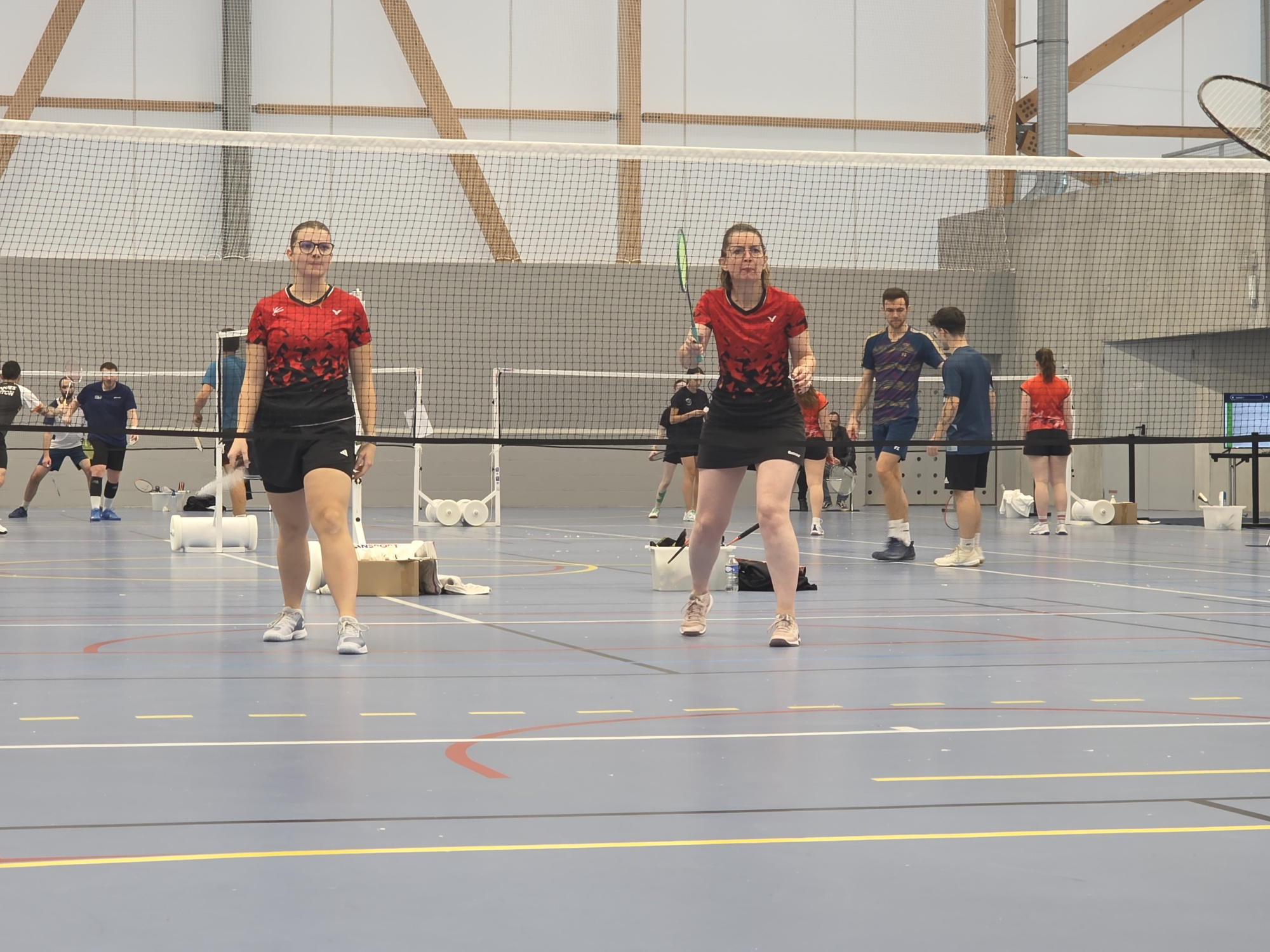 Dans une poule de 4, les filles jouent une paire de niveau équivalent, elles remportent le premier set 21/19, sur le fil. Le 2ème sera de qualité, mais perdu 21/17. Place au 3ème set, les deux paires ne veulent rien lâcher. Perdantes 20/16, Adeline et Isaline décident de sortir leur meilleur jeu pour ne rien laisser à leurs adversaires. Elles vont remonter point par point pour finalement s’imposer 23/21. Le 2ème match sera à l’image du premier, gagnés en 3 sets, 21/16 – 12/21 – 21/13. Le passage en phase finale est assuré, le 3ème match sera joué contre les têtes de séries N°2, et perdu en 2 sets, 21/14 – 21/17. Place à la demi-finale. Adeline et Isaline n’arriveront jamais à sortir leur jeu habituel, la fatigue d’un long week-end de badminton certainement, elles perdront 21/8 – 21/12.